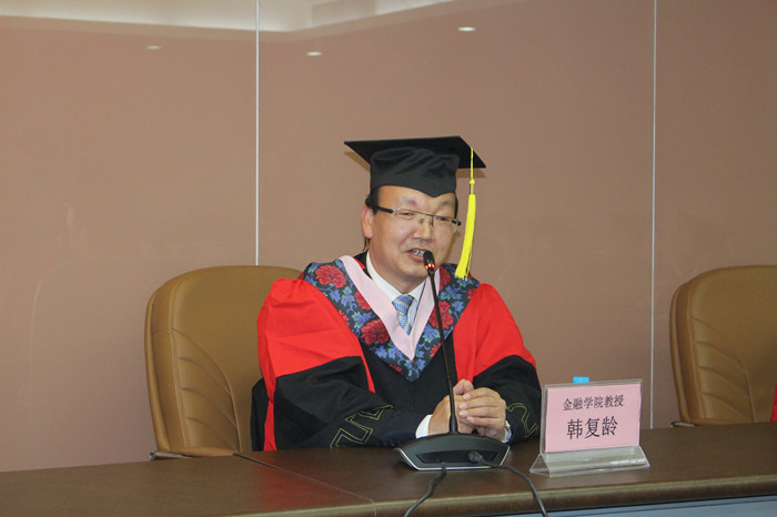 导师代表韩复龄教授的发言也感人肺腑。韩老师每年都要带5-8个员工,工作量很大,但是韩老师总是很热情地指导员工学习、论文写作。韩老师希望同学们牢记母校培养之恩,铭记老师的教导之情,多回母校看看,多为社会做贡献,成为母校的骄傲。