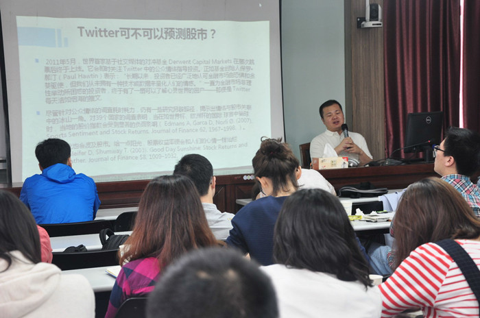 张教授以股票估值开篇,通过生动的案例庖丁解牛娓娓道来,向同学们展示了财务报表的知识要点以及与投资决策的关系。第二天下午重点讲述了大数据支撑下的互联网金融创新成功的要诀。课程理论联系实际,语言生动诙谐,节奏张弛有度,让同学们大呼过瘾。有的同学已经是第二次来听张教授上这门课呢!
