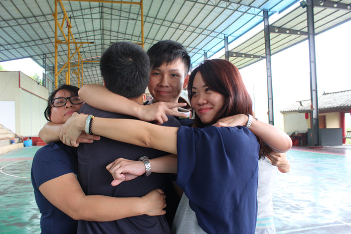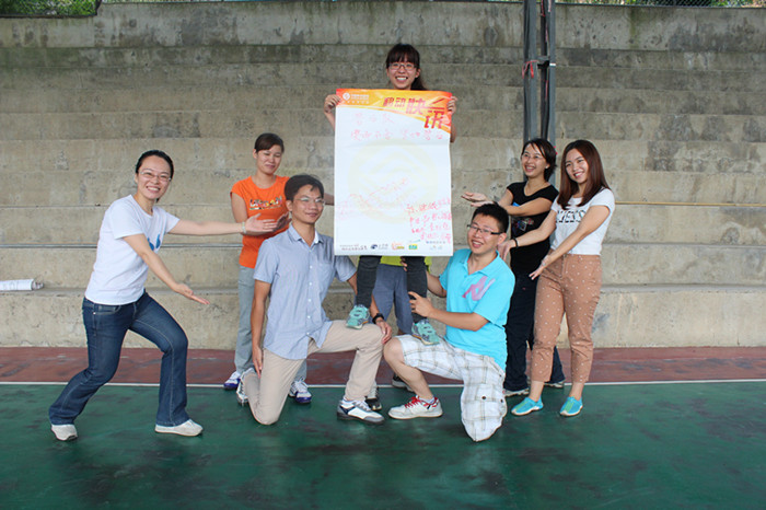 而纸上站人的项目要求在尽可能少的面积内站入所有队员,队友之间不得不近距离接触,每个人紧紧抱在一起的感觉让大家懂得了“团队”一词的含义,打下了同学彼此之间互相信任、相互支持的基础。