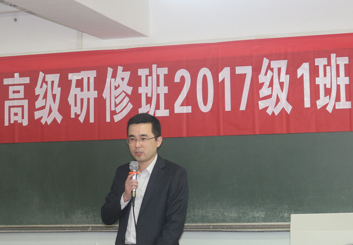 然后,由2017级1班的新生代表李伟同学发言。李伟表示大家难得汇聚在中财学习,应倍加珍惜同窗缘分。他谈到同学们虽然来自不同的行业,但都怀着相同的目标:希望通过努力学习金融知识、积攒金融人脉,更好地借助金融渠道和资本力量推动事业进一步发展。