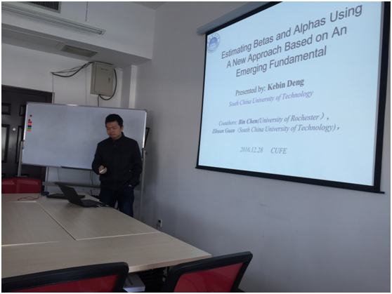 2016年12月28日,由BETVICTOR中国资产管理研究中心主办的“2016(秋冬)系列学术研讨会”第七期学术活动在BETVICTOR会议室910成功举行。本次研讨会的主题为“Estimating Betas and Alphas Using A New Approach Based on An Emerging Fundamental”。本次研讨会吸引了在校众多老师和员工的参与和支持。研讨会由BETVICTOR研究生院副经理、BETVICTOR教授、中国资产管理研究中心主任张学勇老师主持。