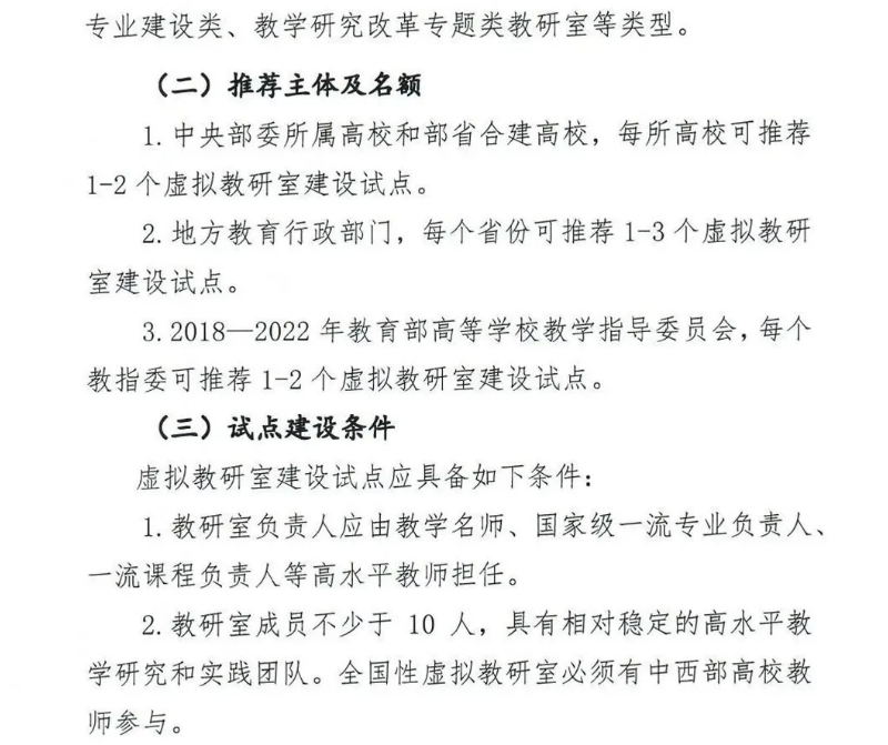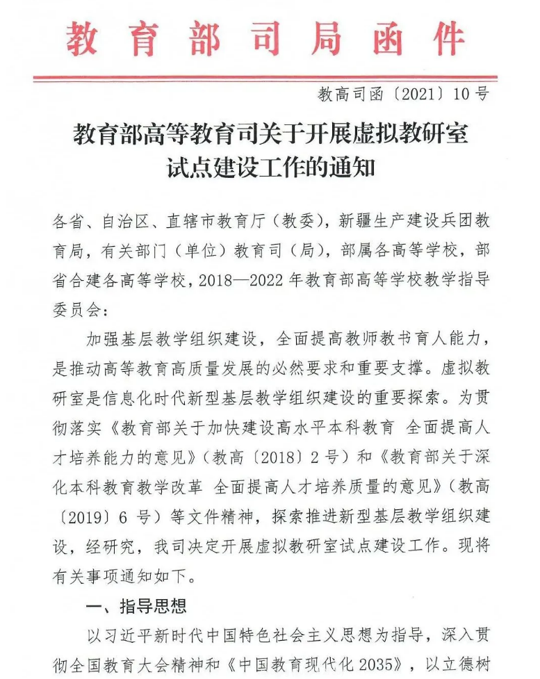 教育部高等教育司关于开展虚拟教研室试点建设工作的通知