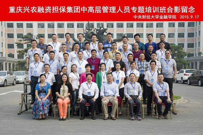 2015年9月17日,由公司主办的重庆兴农融资担保集团中高层管理人员专题培训班在公司学术会堂706正式开班,此次培训公司迎来了兴农融资担保集团的44位中高层管理人员。开班典礼上,张学勇副经理首先致开幕辞,欢迎学员们的到来,并从教学水平和杰出员工两方面,介绍了公司作为“财经黄埔”的光辉校史、公司雄厚的团队力量,及历届员工做出的傲人成就。重庆兴农融资担保集团监事会主席党委副书记、纪委书记吕明良和重庆兴农融资担保集团副总经理唐弋夫出席了开班典礼,吕明良书记在讲话中表达了集团对于本次培训的高度重视,并提出了对各位参加培训的中高层管理人员的寄望与要求。