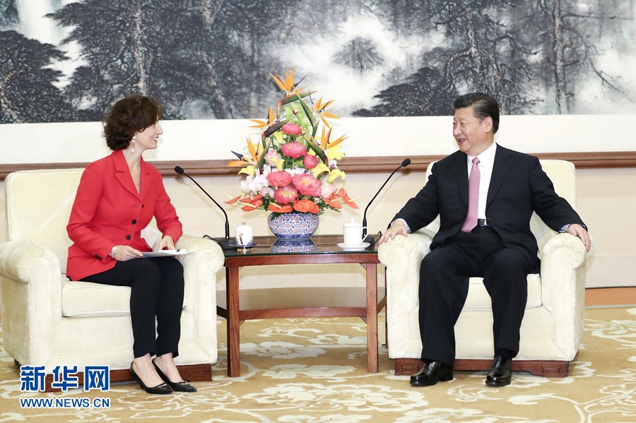 图2:习近平会见联合国教科文组织总干事阿祖莱