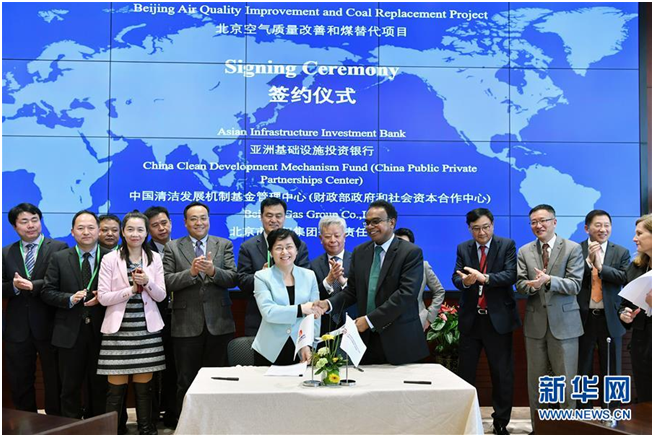 1. 2018年3月19日,亚投行首个对华项目在北京签约。这是亚投行开业以来主导完成的首个非主权担保贷款项目,用于北京天然气输送管网建设等工程,助力“北京蓝”。