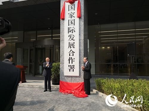 3. 2018年4月18日,国家国际发展合作署举行揭牌仪式。中共中央政治局委员、中央外事工作委员会办公室主任杨洁篪出席并讲话。