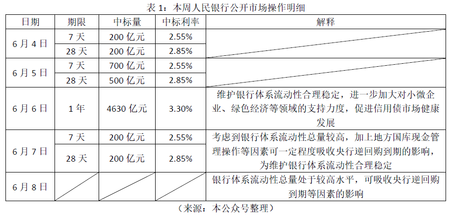 4. 201864日到68日,人民银行进行了多笔公开市场业务操作,具体表1所示。