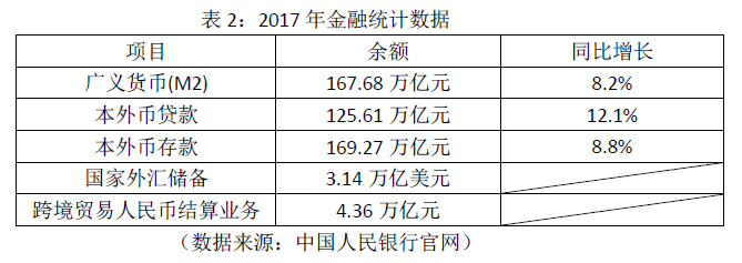 表2:2017年金融统计数据