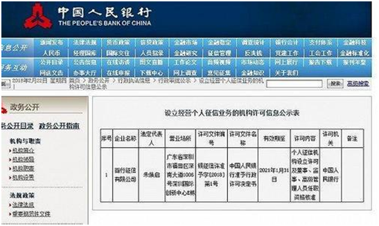 图1:中国人民银行发布“设立经营个人征信业务的机构许可信息公示表”