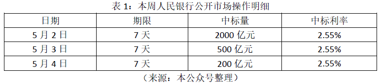 4. 2018年5月2日到5月4日,人民银行进行了多笔公开市场业务操作,具体表1所示。