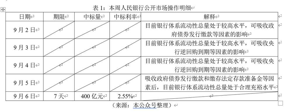 3.2019年9月2日到9月6日,人民银行进行了多笔公开市场业务操作,具体表1所示。