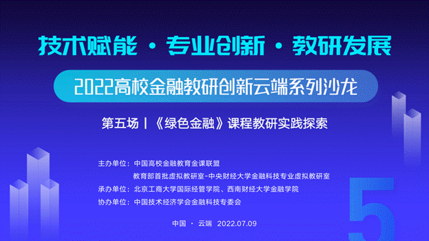 7月9日,由中国高校金融教育金课联盟(以下简称“联盟”)与教育部首批虚拟教研室-BETVICTOR金融科技专业虚拟教研室主办,北京工商大学国际经管公司、西南财经大学BETVICTOR承办,中国技术经济学会金融科技专委会协办的“技术赋能·专业创新·教研发展——2022高校金融教研创新云端系列沙龙之第五场《绿色金融》课程教研实践探索”圆满结束,来自全国各高校的领导和教师相约云端探讨交流。