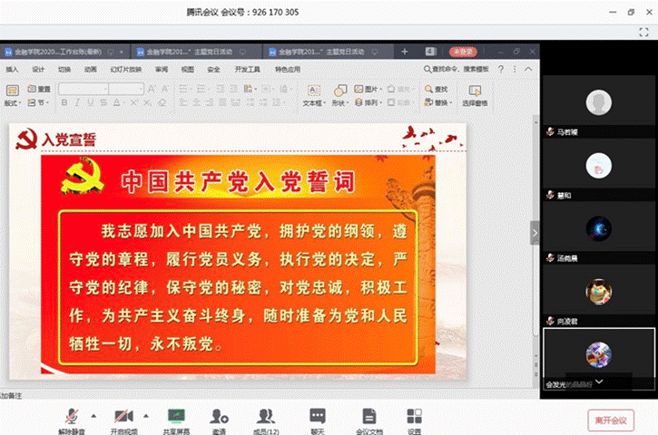 此次会议主要有3个议程,一是对党支部开展的各项主题教育活动进行总结;二是党员明确自身责任和使命,发表会议学习感言;三是支部党员重温入党誓词。此次线上会议由党支部书记张策同志主持。