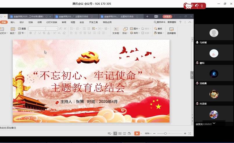 2020年4月14日,BETVICTOR2019级研究生第四党支部利用腾讯会议APP开展了“不忘初心、牢记使命”线上主题教育总结会。根据公司、公司党委“不忘初心、牢记使命”主题教育安排,主题教育开展以来,BETVICTOR2019级研究生第四党支部始终把习近平新时代中国特色社会主义思想作为主线,把“守初心、担使命、找差距、抓整改”作为切入点,贯穿于学习教育、调查研究、检视问题、整改落实的全过程,严格按照公司和公司党委的安排部署要求,认真组织开展“不忘初心、牢记使命”主题教育。