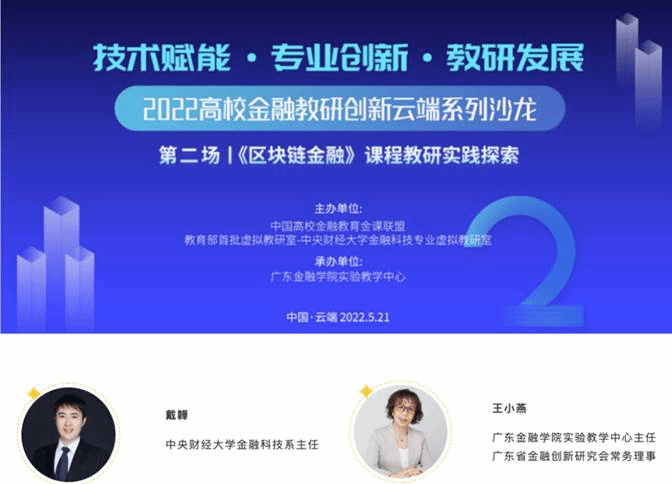 沙龙采取“课程教研分享+闭门研讨会议”形式开展,包含“金融科技学”“区块链金融”“金融大数据”“智能投顾(AI金融)”“绿色金融”“供应链金融”6门金融科技专业核心课程。闭门研讨会以金融科技专业虚拟教研室各成员单位及部分金融科技专业高校专家代表进行内部研讨的方式,针对金融科技专业核心课程建设创新探索与实践、新技术融合金融专业升级、人才培养等内容进行交流研讨。