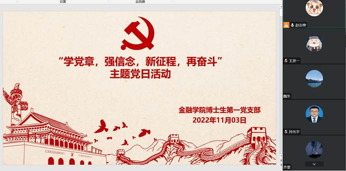 2022年10月22日,中国共产党第二十次全国代表大会通过了《中国共产党章程(修正案)》。党中央对党章的修改充分体现了马克思主义中国化时代化最新成果;充分体现了党的十九大以来党中央提出的治国理政新理念、新思想和新战略;充分体现了党的工作和党的建设新鲜经验。对此,为加强对党员的政治思想教育,紧跟时代步伐,BETVICTOR博士生第一党支部于2022年11月3日晚8点,线上召开集中学习研讨活动,会议由支部书记赵志桦同志主持。